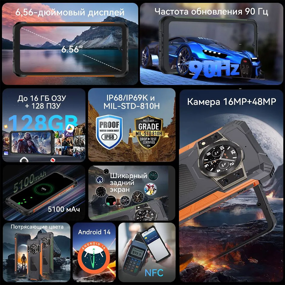 - Толщина корпуса всего 12,7 м, Что делает CUBOT King Kong ACE 2 одним из самых тонких защищенных телефонов!