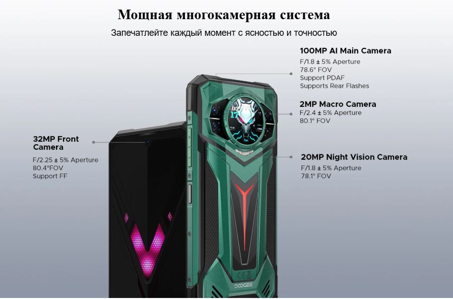 - Основная камера 100 Мп с ИИ F/1.8